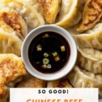 Classic homemade Chinese beef dumplings (jiaozi) featuring a savory filling of ground beef, napa cabbage, and aromatics, wrapped in delicate dumpling wrappers and pan-fried to crispy perfection with a tender steamed finish.