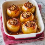 3. Stuff the Apples: Divide the prepared filling evenly into each apple’s cavity. Top each apple with 1/2 tablespoon of unsalted butter, sprinkle with finely chopped walnuts if using, and then sprinkle any remaining cinnamon and sugar mixture over the apples. Arrange them in a 9×13-inch casserole dish.