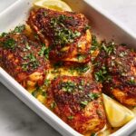 This Baked Garlic Butter Cajun Cod is a quick and flavorful seafood dish featuring tender cod fillets coated in a spicy garlic butter sauce, baked to perfection. With a blend of Cajun seasoning and smoked paprika, it offers a balanced kick of spice while remaining light and healthy. Perfect for a weeknight dinner, it’s easy to prepare and garnished with fresh parsley and lemon wedges to enhance the fresh, zesty taste.