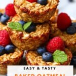 Sprinkle your baked oatmeal cups with a dusting of cinnamon or powdered sugar for a pretty presentation. A dollop of Greek yogurt or a drizzle of almond butter adds creaminess and extra protein for a satisfying bite.
