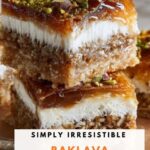 Baklava Cheesecake Bars combine the flaky, buttery layers of classic baklava with a rich and creamy cheesecake filling. This recipe features a crisp phyllo dough crust and topping, spiced nuts, and a luscious honey syrup that soaks into every bite, creating a perfect fusion of Mediterranean and American dessert traditions.