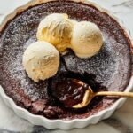 • This dessert features a molten, pudding-like brownie center that is best enjoyed warm and slightly underbaked.