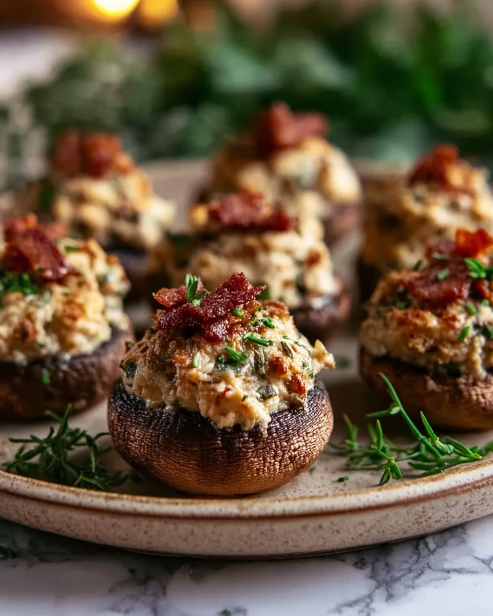 Serve these stuffed mushrooms alongside a crisp winter salad or alongside a hearty roast for an elegant holiday experience. They also work beautifully as part of a festive appetizer spread featuring cured meats, cheeses, and warm dips, giving your guests plenty of delicious variety to enjoy before the main event.