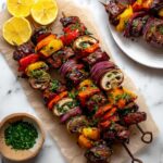 These Best Ever Grilled Steak Kabobs feature tender ribeye steak cubes marinated in a flavorful blend of soy sauce, mirin, sesame oil, garlic, and ginger, skewered with shishito peppers, baby bella mushrooms, and red onion. Grilled to perfection on a hot grill or griddle pan, these kabobs are juicy, aromatic, and ideal for a savory, crowd-pleasing meal.
