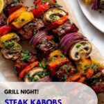 Grill the kabobs for 4-5 minutes per side for medium doneness. The steak should feel firm but still give slightly when pressed. For more precision, use a meat thermometer—medium is about 140 to 145 degrees Fahrenheit.
