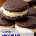 This Best Whoopie Pie Recipe features tender, chocolatey cake rounds sandwiched with a rich, fluffy marshmallow buttercream filling. Enhanced with a hint of coffee and malt, these classic, soft treats are perfect for dessert or celebrations. You can make bite-sized, regular, or giant whoopies, and optionally dip them in melted chocolate and decorate with sprinkles.