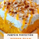 This Better Than Anything Pumpkin Cake is a moist, flavorful dessert perfect for fall or any time you crave a pumpkin treat. Made with a yellow cake mix and pumpkin puree, it’s enhanced with brown sugar and pumpkin pie spice for the ideal autumn flavor. After baking, sweetened condensed milk is poured over to soak into the cake, creating a luscious, rich base. Topped with whipped cream, toffee bits, and caramel sauce, this cake offers a delightful combination of creamy, crunchy, and sweet notes in every bite.