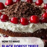 While the traditional trifle bowl lets your layers shine through with stunning visual appeal, you can also serve the Black Forest Trifle for Christmas Recipe in individual clear glasses for a personalized touch. Mason jars or parfait glasses work beautifully, making serving easy and adding a charming rustic vibe. For a playful twist, serve the trifle as mini dessert cups stacked with all the layers, perfect for parties where guests want a taste but not a large helping.