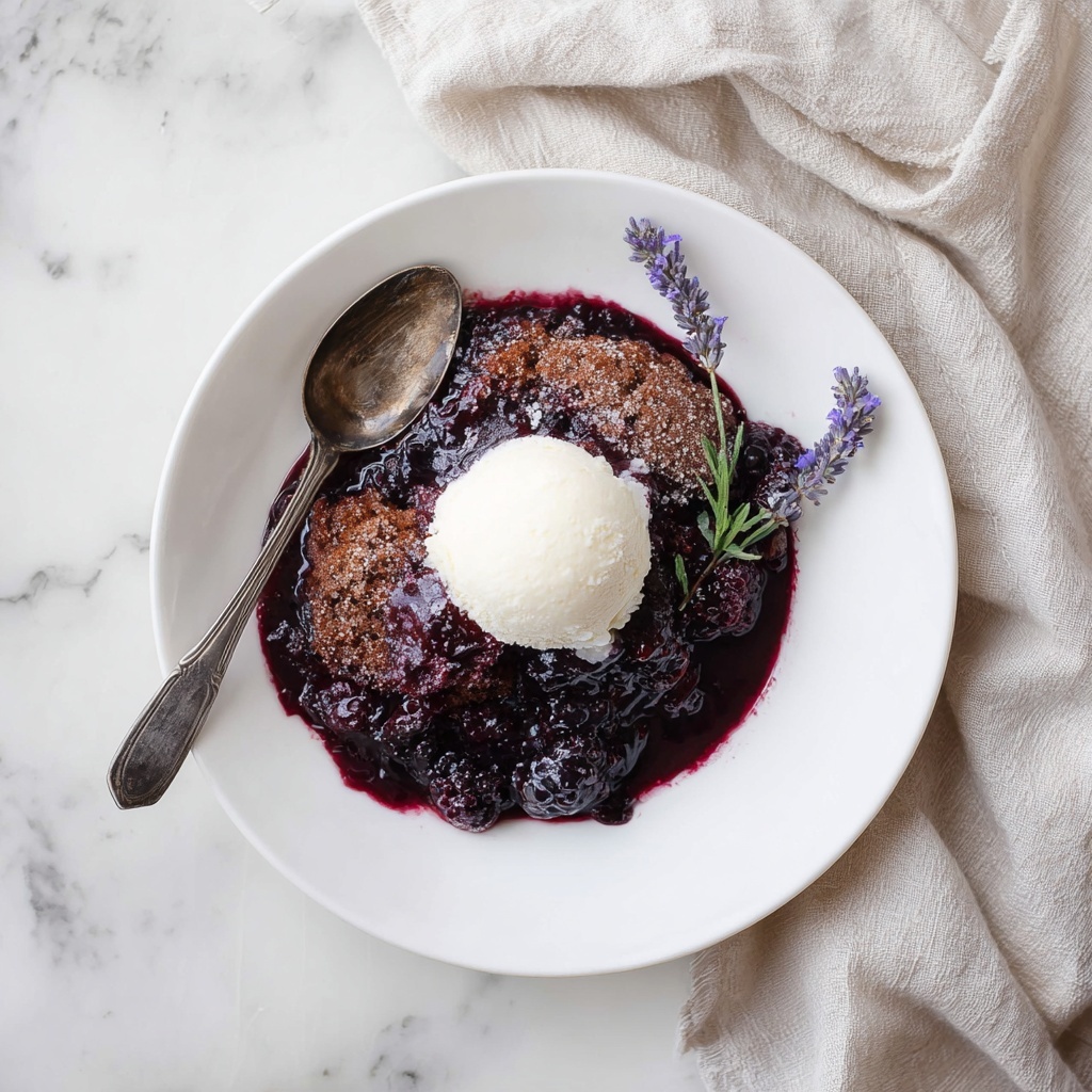 A scoop of creamy vanilla ice cream is an absolute must when serving this cobbler—it cools and balances the warm, fruity filling perfectly. Don’t forget a few sprigs of fresh lavender on the plate to add a pop of natural color and that subtle floral scent that echoes the lavender in the cobbler itself. It’s like dessert styling made easy and elegant.