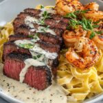 How to Serve Blackened Steak and Shrimp Alfredo Recipe