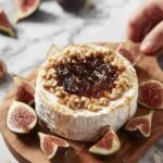 - Add the Fig Jam: Spoon 2 to 3 tablespoons of fig jam generously over the top of the cheese wheel, spreading it evenly to cover the surface for a sweet contrast.