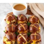These delicious Breakfast Sliders feature mini pretzel buns filled with savory sausage, crispy bacon, fluffy scrambled eggs, and melted Colby Jack cheese. Perfectly brushed with a buttery maple syrup glaze and baked to warm, melty perfection, these sliders are a hearty and flavorful morning treat ideal for brunch or a special breakfast gathering.