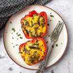 Breakfast Stuffed Bell Peppers with Turkey Sausage, Mushrooms, Spinach, and Cheddar Recipe