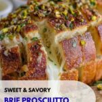 You can prep the prosciutto and crush the pistachios in advance, but it’s best to assemble and bake the bread right before serving to enjoy the Brie perfectly melted and the prosciutto crispy and fresh.