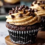 While the cupcakes cool completely, whip the softened butter until creamy. Slowly add powdered sugar, vanilla, heavy cream, and a pinch of salt, beating until the frosting is smooth and fluffy. If it’s too thick, add cream little by little until you reach that perfect spreadable texture. Frost each cupcake generously, then sprinkle with extra mini chocolate chips or cookie crumbs if you want that extra touch of decadence.