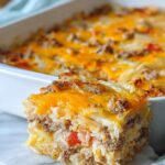 Remove the foil and sprinkle a generous layer of shredded cheddar cheese over the top. Return the dish to the oven uncovered for another 10 to 15 minutes, or until the cheese is bubbly and golden brown—the final touch that makes this Cabbage Beef Bake Recipe absolutely irresistible.