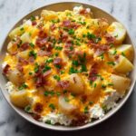 This Cheesy Potato Egg Scramble is a hearty and comforting breakfast dish featuring crispy-boiled potatoes, fluffy scrambled eggs, melted cheddar cheese, and optional savory ham or bacon, all topped with fresh green onions for a burst of flavor. Easy to prepare and perfect for a satisfying morning meal.