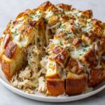 Chicken Alfredo Monkey Bread is a savory, pull-apart bread featuring tender shredded chicken mixed with creamy Alfredo sauce and Italian seasonings, combined with soft biscuit dough and topped with melted mozzarella and Parmesan cheeses. Perfect as a shareable appetizer or a comforting main dish, this recipe offers an easy-to-make, delicious twist on classic monkey bread.