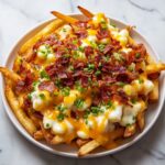 Scatter the crumbled bacon and chopped green onions over the top for that perfect crunch and fresh pop of flavor. Serve immediately while everything is hot, gooey, and bursting with incredible textures and tastes.