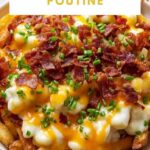 - Add gravy and toppings: Generously pour the warm gravy over the fries, chicken, and cheese. Top with the crumbled bacon and chopped green onions. Serve immediately to enjoy the dish hot and melty.