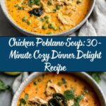 There is nothing quite like cozying up with a bowl of Chicken Poblano Soup: 30-Minute Cozy Dinner Delight Recipe to bring warmth and a smile to your dinner table. Its perfect balance of spice, creaminess, and hearty goodness makes it a must-try recipe that’s sure to become a staple. Don’t wait for a special occasion—make this delightful soup tonight and share the comfort with the ones you love.