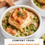 - Serve: Spoon the warm chicken and vegetable filling into bowls or plates and top each serving with the baked puff pastry pieces. Enjoy immediately.