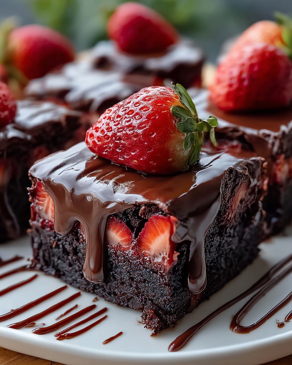 Delight in these rich and fudgy Chocolate Covered Strawberry Brownies, featuring a perfect balance of deep cocoa flavor and fresh, juicy strawberries topped with a glossy chocolate drizzle. Ideal for dessert lovers who crave a fruity twist on classic brownies.