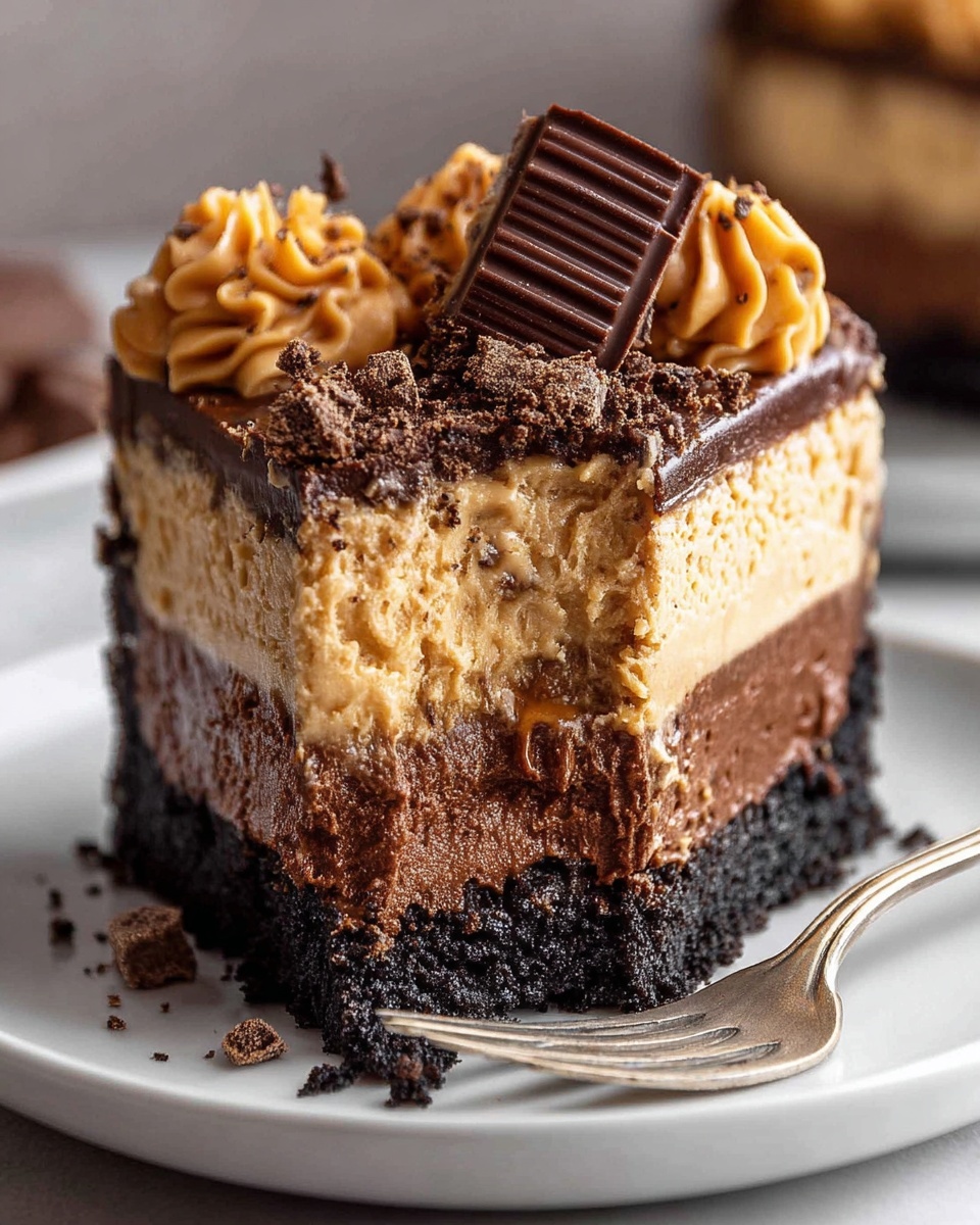 Add chopped peanuts, chocolate shavings, or halved peanut butter cups on top for a stunning presentation. Use a warm knife to slice through neat wedges, serving chilled to highlight the luscious texture and decadent flavor contrast that makes this recipe so special.