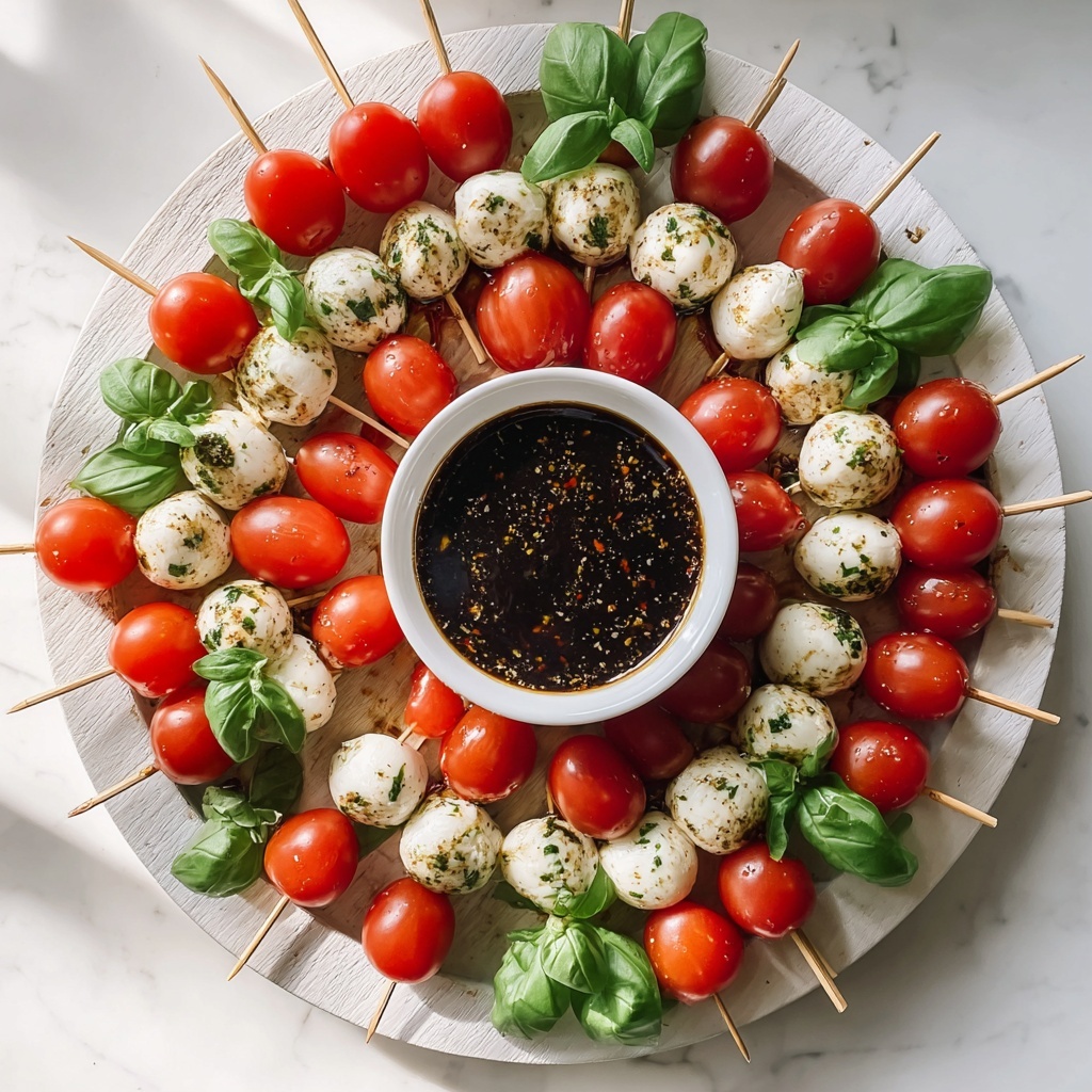 Start by giving those cherry tomatoes and fragrant basil leaves a good wash, then dry them gently so they’re ready to shine. Make sure your fresh mozzarella balls are thoroughly drained and patted dry to avoid any watery mess. If you’re using homemade balsamic glaze, have it prepared and thickened to that perfect consistency. Lay out all your ingredients around your serving platter so everything is at hand for quick and seamless assembly.