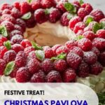 This Christmas Pavlova is a festive and elegant dessert featuring a crisp meringue wreath topped with a luscious whipped mascarpone cream and fresh raspberries. Perfect for holiday celebrations, it combines the light, airy texture of pavlova with a creamy, fruity topping that dazzles both the eyes and the palate.