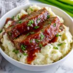 For a modern twist, serve slices of meatloaf on toasted brioche buns with a dollop of extra tomato glaze or mustard aioli to turn it into a gourmet meatloaf sandwich. You can also deconstruct the dish by layering thin meatloaf slices with mashed potatoes and beans in a casserole style for a fun presentation.
