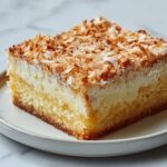 This cake pairs wonderfully with light accompaniments. Fresh tropical fruits like mango, pineapple, or kiwi brighten the plate and complement the rich coconut flavor. A scoop of vanilla or coconut ice cream turns this dessert into a perfect indulgence, especially on warm days.