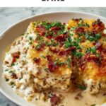 Pair this casserole with a crisp green salad or steamed veggies like broccoli or green beans to balance out the meal. Something light and fresh on the side cuts through the richness perfectly.
