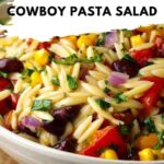 Cowboy Pasta Salad is a vibrant, flavorful dish perfect for quick lunches or potluck gatherings. Featuring tender orzo pasta tossed with fresh vegetables, black beans, and corn, all coated in a zesty chipotle-lime dressing, this salad offers a delightful blend of smoky, sweet, and tangy flavors. Ready in just 25 minutes, it’s a refreshing and satisfying meal that’s easy to prepare and enjoy chilled or at room temperature.