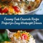 This Crab Casserole is a creamy, cheesy, and comforting seafood dish perfect for a cozy dinner. It combines imitation crab meat with a blend of cream cheese, mayo, sour cream, Swiss and cheddar cheeses, and a medley of spices, baked to golden perfection and served over rice or pasta.