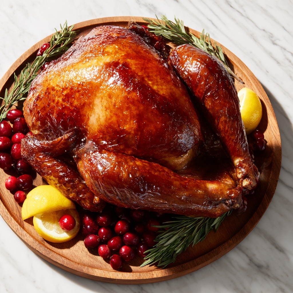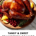 - Slice and Serve: Slice the rested turkey and arrange the pieces on a serving platter. Garnish with fresh herb sprigs, orange wedges, and whole cranberries. Serve the turkey accompanied by the cranberry-orange glaze gravy.