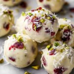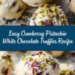 Delightful Cranberry Pistachio White Chocolate Truffles combining creamy white chocolate, tart cranberries, and crunchy pistachios into bite-sized, festive treats perfect for holidays and special occasions.