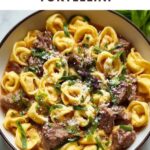 For a casual dinner, serve family-style in the skillet you cooked it in for a rustic feel. If you want to impress guests, plate it elegantly by twirling the tortellini into nests and draping a few strips of steak on top, finished with a sprinkle of herbs and Parmesan. Adding roasted cherry tomatoes on the side adds color and sweetness for a picture-perfect plate.