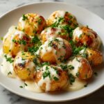 This Creamy Garlic Sauce Baby Potatoes recipe features tender baby potatoes coated in a luscious, garlicky cream sauce made with butter, garlic, heavy cream, and a touch of Dijon mustard. Perfectly seasoned and garnished with fresh parsley, it makes a comforting side dish ready in just 30 minutes.