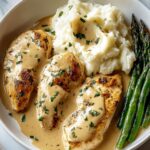 This creamy sauce pairs wonderfully with a variety of sides. Serve over a bed of buttery mashed potatoes that soak up every drop, or alongside al dente pasta that twirls effortlessly in the sauce. Steamed vegetables like broccoli or green beans add a crisp, fresh contrast to the rich chicken for a well-rounded plate.