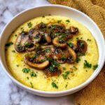This Creamy Garlic Polenta with Mushrooms is a comforting and rich dish featuring stone-ground polenta cooked slowly with garlic, butter, cream, and Parmesan cheese, topped with savory sautéed mushrooms seasoned with fresh thyme and garlic. Perfect as a hearty vegetarian main or a flavorful side, it delivers a creamy texture balanced with the earthiness of mushrooms and a fresh parsley garnish.