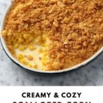 This Creamy Scalloped Corn Casserole Recipe pairs beautifully with hearty mains like roast chicken, glazed ham, or savory meatloaf. It also complements Southern classics such as collard greens or slow-cooked greens, making for a well-rounded and satisfying meal.