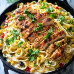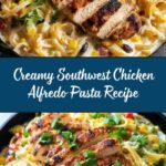 This Creamy Southwest Chicken Alfredo combines the rich flavors of a classic Alfredo sauce with bold southwestern spices and fresh ingredients. Tender seared chicken breasts seasoned with chili powder, smoked paprika, and cumin are paired with a cheesy, creamy sauce featuring pepper jack cheese, corn, black beans, and green chilies. Served over perfectly cooked fettuccine, this dish offers a balanced blend of smoky, spicy, and creamy notes, ideal for a comforting weeknight dinner or a special occasion meal.