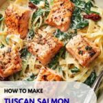 This Creamy Tuscan Salmon Pasta is a delicious and hearty Italian-inspired dish featuring tender salmon fillets, sun-dried tomatoes, spinach, and a rich cream sauce tossed with fettuccine or linguine pasta. It’s perfect for a comforting dinner that feels gourmet but is easy to prepare on the stovetop in just 30 minutes.