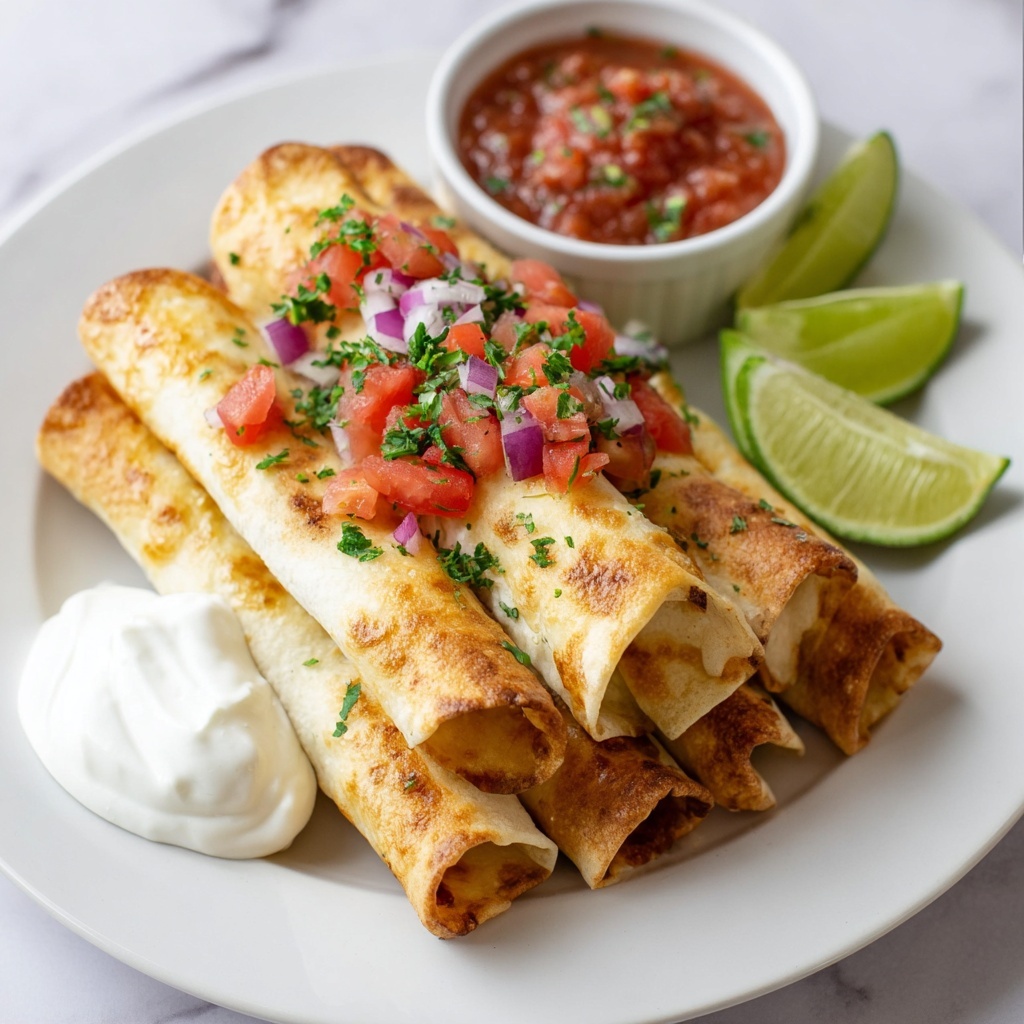 These taquitos come alive with fresh garnishes. A dollop of sour cream, a sprinkle of chopped cilantro, or a squeeze of lime juice adds freshness and contrast. For more indulgence, shredded cheese, guacamole, or a drizzle of your favorite salsa can take the taquitos to new flavor heights.