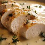 Carefully pour the blended gravy mixture over the chicken breasts, ensuring that the meat is nicely covered. This will allow the flavors to meld beautifully as everything cooks together.