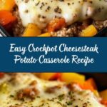 This Crockpot Cheesesteak Potato Casserole is a comforting and hearty one-pot meal featuring layers of tender potatoes, savory ground beef or shaved steak, sautéed onions and bell peppers, all smothered in a creamy mushroom soup mixture and melted cheddar cheese. Perfect for a cozy family dinner with minimal prep and easy slow cooker convenience.