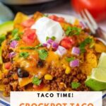 This hearty Crockpot Taco Casserole is a flavorful, easy-to-make dish combining seasoned ground beef, black beans, corn, and salsa, all slow-cooked to perfection with tortilla chips and melted Mexican cheese. Perfect for a comforting family meal, it’s garnished with fresh avocado, sour cream, tomatoes, cilantro, and lime for a burst of vibrant taste.