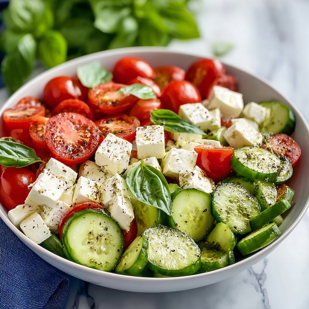 For an extra flavor kick, lightly sprinkle the cucumber slices with a pinch of salt and let them sit for 10 minutes before assembling the salad to draw out their natural sweetness and reduce excess water.