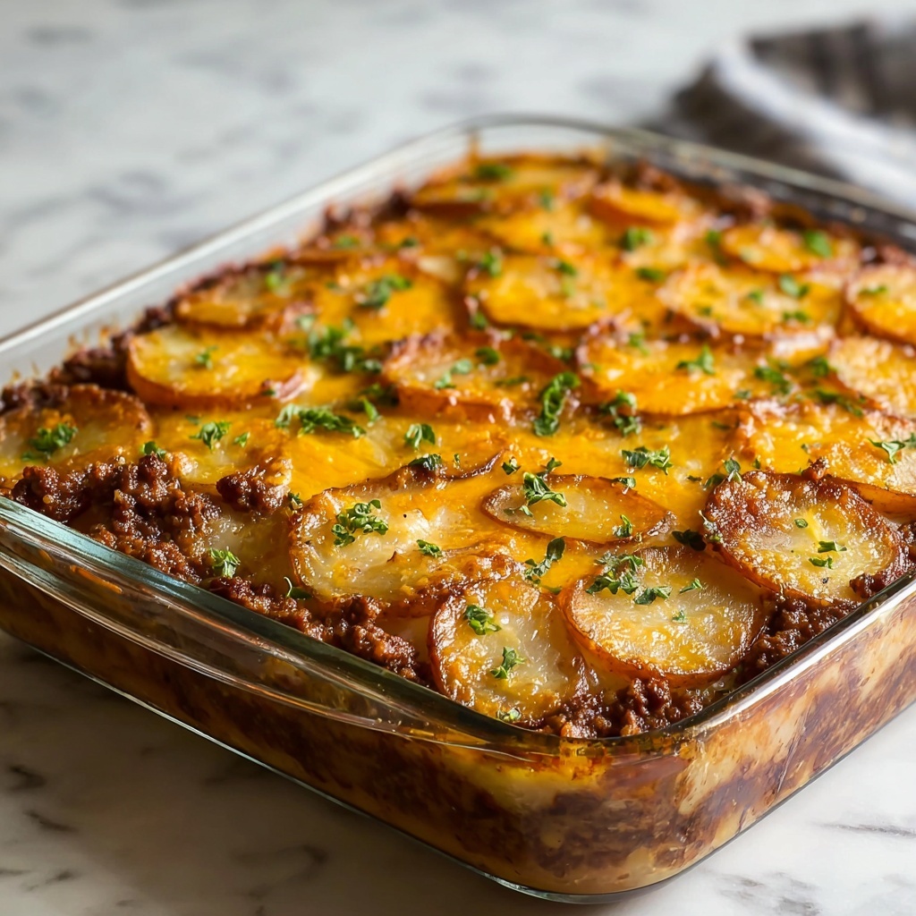 Easy and hearty Hobo Casserole with ground beef and potatoes is a comforting American classic perfect for family dinners. Layers of seasoned ground beef, sliced potatoes, and creamy mushroom soup baked with cheddar cheese create a delicious and filling meal with simple ingredients.